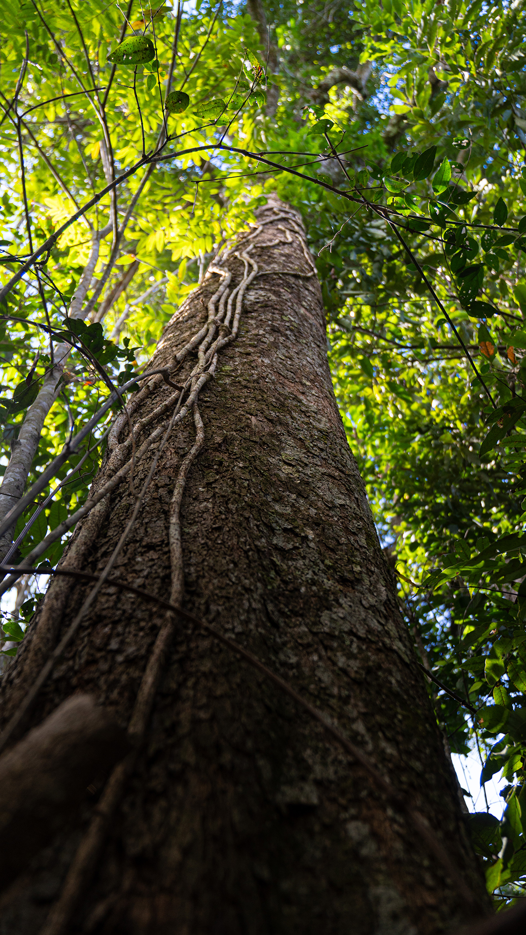 A natureza se apoia. Árvores e plantas se unem para chegar a luz do sol.
